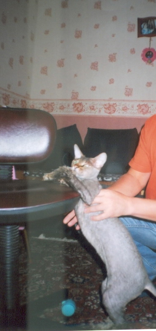 А у меня живёт кот, Устин, но полное его имя Жустин Обыкновенное Чудо. Порода - Донской Сфинкс. Правда он оч пушистый и кудрявый, даже усы кудрявые