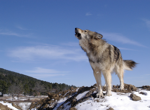 Фото очень мелкое, поза отличается, но нога видна, снизу, чуть левее от передней левой лапы. Даже несмотря на то, что передние лапы волка заметно шире.