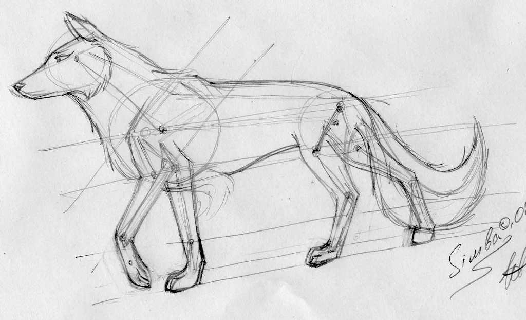 Для начала возьмем фотографию волка примерно в той же позе и ракурсе, чтоб было нагляднее. Рисовать что-либо сейчас влом, поэтому давай просто сравнивать.