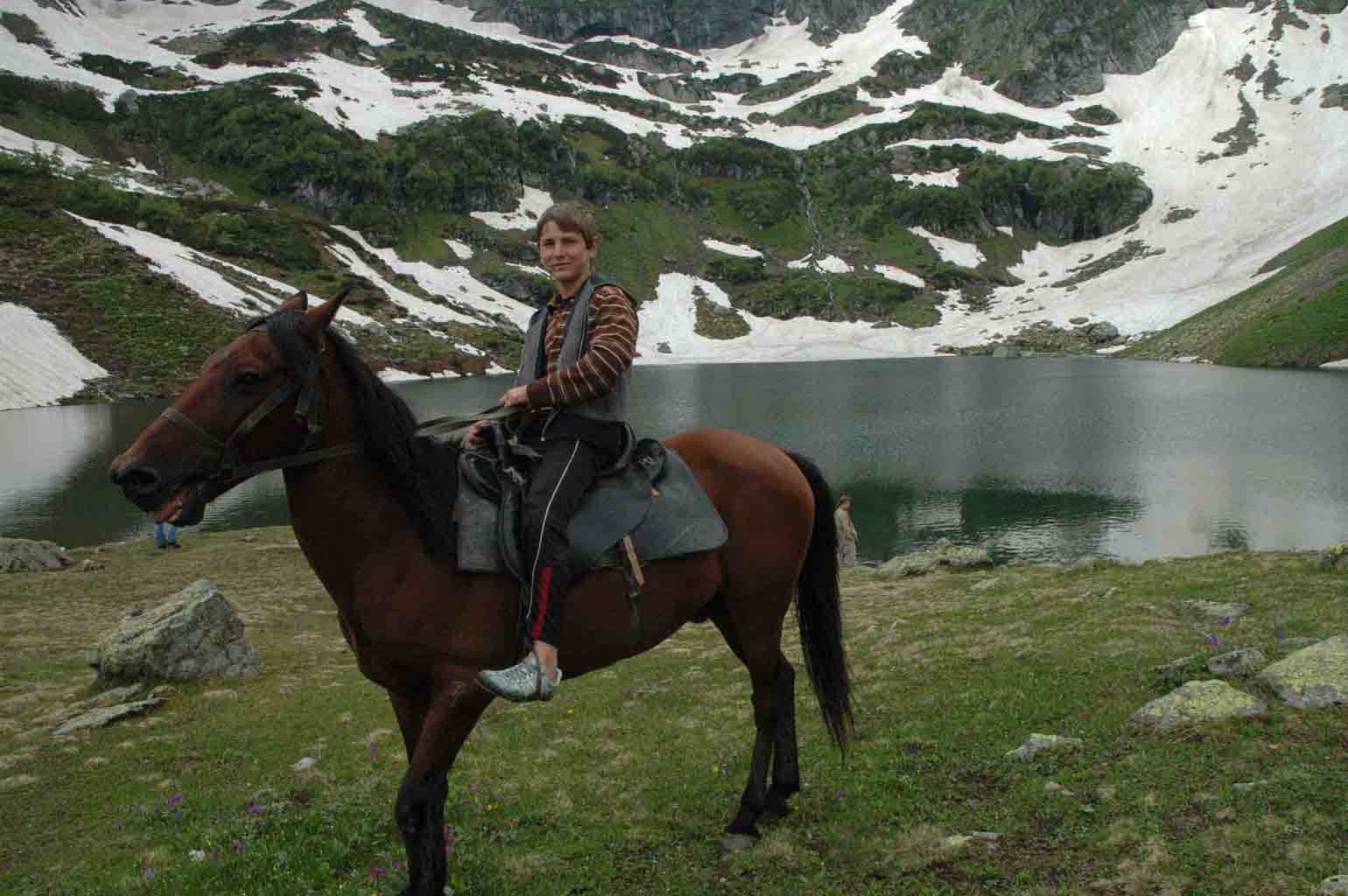 Хотя мой единственный экспириенс - конный выезд по абхазским горам до озера Мзы = впечатление на всю жизнь. Здорово было. Но там, есс-но абхазы нас посадили, сказали ничего не трогать и кони сами по своей протоптанной дорожке ломанулись...