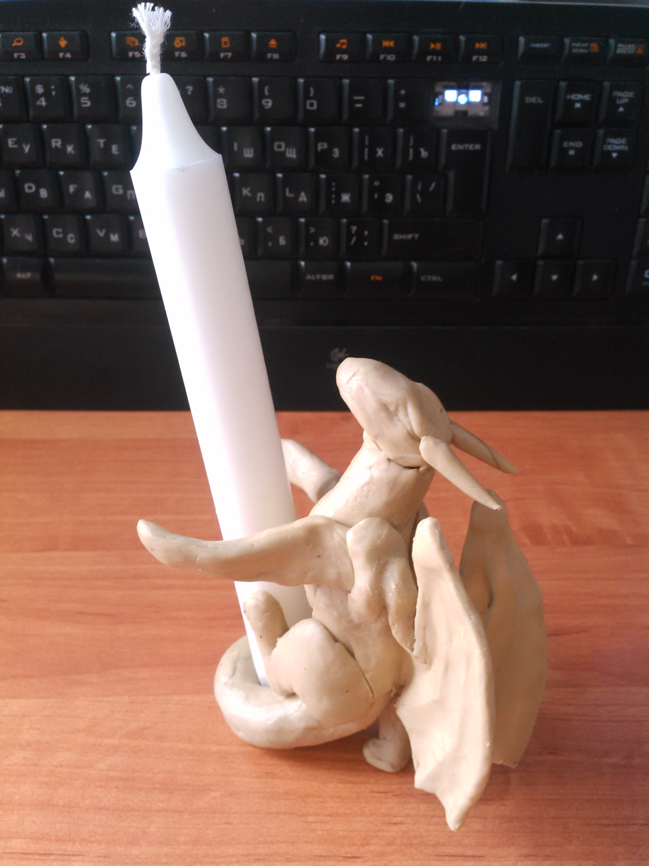 У меня очередной проект... Задачей было сделать подсвечник в виде дракончика, не имеющий никаких видимых поддерживающих элементов. Только дракончик и свеча.