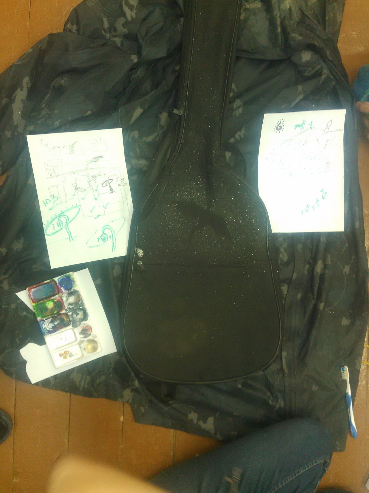 Разбираю летние фотографии. Так я кому-то расписывал гитарный чехол: силуэт дракона на фоне звёздного неба. А звёздное небо правда светится в темноте.