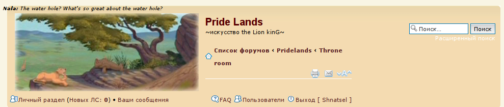 Мы про " * Список форумов ‹ Pridelands ‹ Throne room" в шапке. На экранах шириной 1024 пикселя этот блок выглядит как на приложенном скрине.