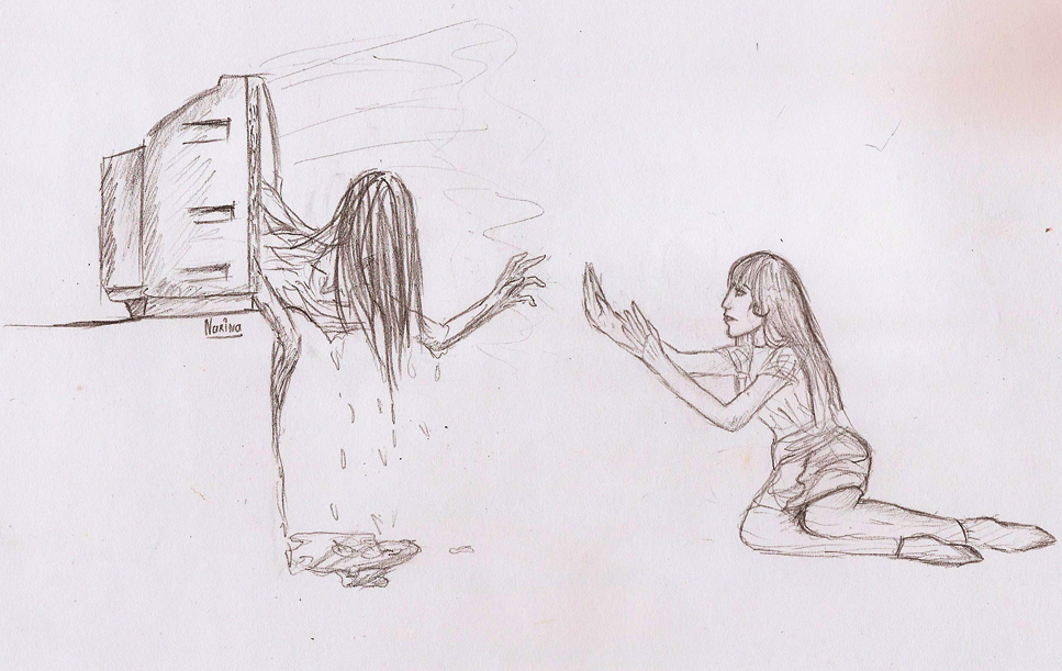 Продолжение темы кошек, я по-прежнему срисовываю с фотографий. Нижней кошке я не дорисовала морду, она у меня никак не получалась, я извиняюсь, просто сил уже нет. А еще я выложу рисунок немного не по теме. :roll: Он по фильму "Звонок", который пугает меня до сих пор.